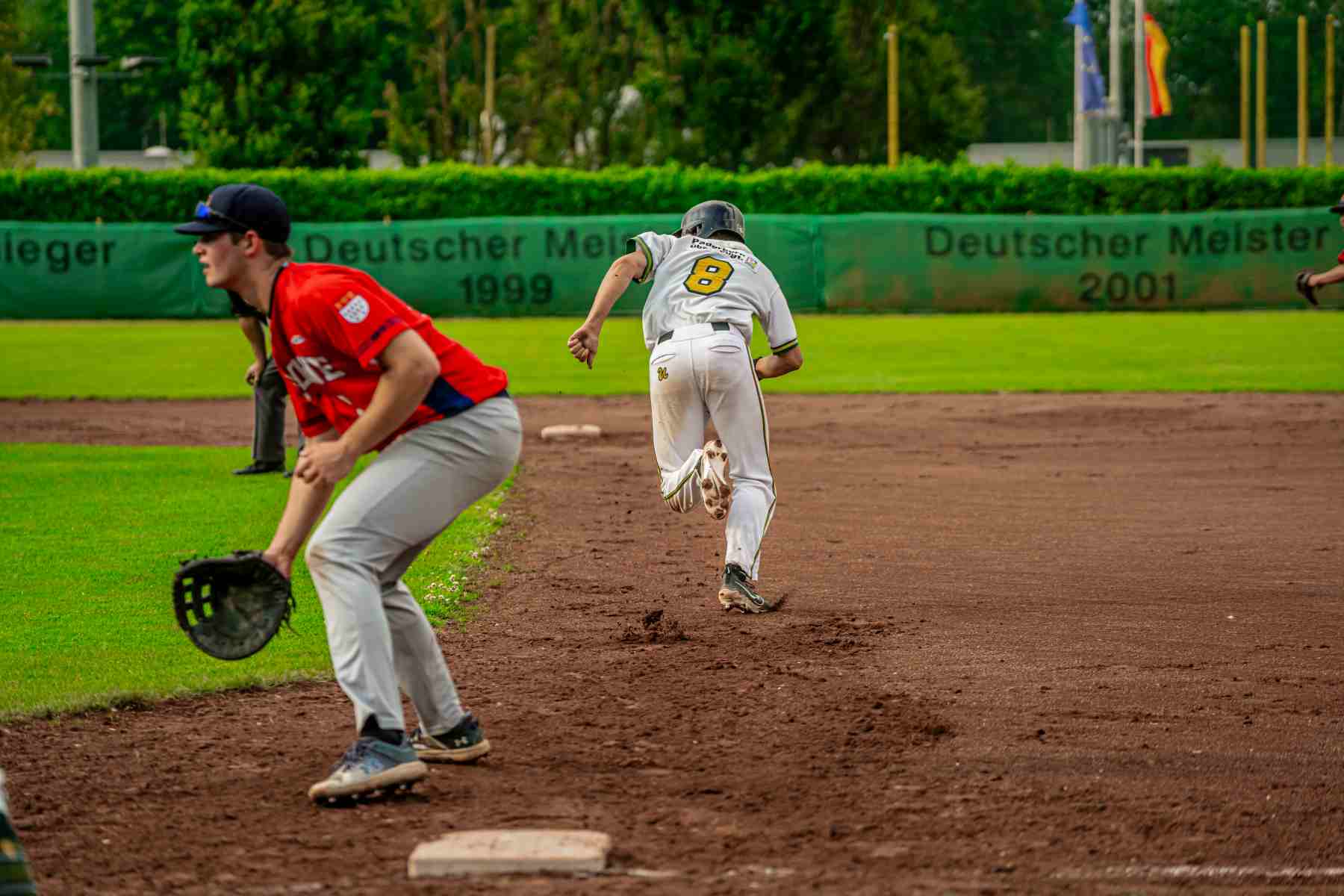 Im siebten Inning punkteten Ladislaus Landwehr und Darrion Richards auf einen Schlag von Sho Usui zum 6:3. Luca Rammelmann und Finn Bergmann erhöhten mit zwei weiteren Runs auf 8:3. Schließlich sicherte Darrion Richards im achten Inning den Endstand von 9:3 mit einem weiteren Schlag von Sho Usui.