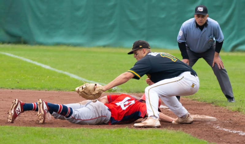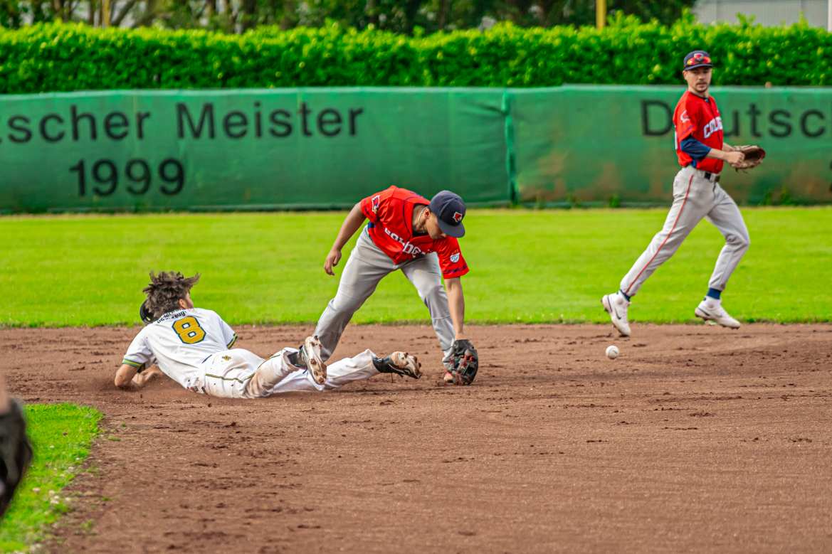 Darrion Richards schlug im ersten Inning einen Basehit, gefolgt von einem Walk von Sho Usui und einem Hit by Pitch für Finn Bergmann. Luca Rammelmann brachte mit einem Basehit Richards und Usui zum Punkt. Im zweiten Inning erreichte Maurice Bendrien mit einem Double die Base und wurde von Darrion Richards zum 3:0-Endstand nach Hause geschlagen.