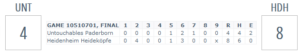 Mark Harrison begann stark für die U's, musste aber in 5 Innings insgesamt 5 Punkte hinnehmen und verzeichnete somit den Loss. Florian Seidel kam für ein Inning auf den Mound und ließ 3 Runs zu. Die letzte Phase des Spiels übernahm Matt Kemp, der in zwei Innings fehlerlos blieb und die Partie erfolgreich beendete. In der Offensive stachen Usui, Beyers, Maul und Landwehr mit je einem Hit hervor. Das absolute Highlight setzte Tobias Maul, der mit einem Homerun über den Centerfieldzaun für Jubel sorgte.