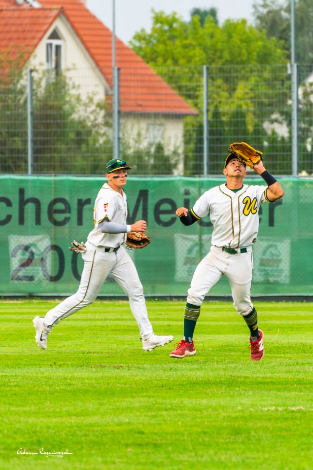 Im ersten Spiel startete der routinierte Mark Harrison auf dem Mound und lieferte eine starke Leistung ab. Mit 6 Innings, 5 Hits, 0 Earned Runs, 4 Walks und 6 Strikeouts gab er nur zwei unverschuldete Punkte ab. Florian Seidel (3IP, 4H, 1ER, 1BB) übernahm anschließend und ließ in 3 Innings nur einen Punkt zu.