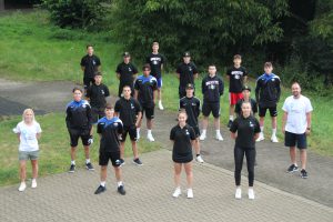 Neu im Sportinternat: Alex de Nittis, Alessandro Marino, Paul Donner, Giovanni Pollio, Rebronja Salmin, Joe Muscatt, Johnason Schüttelhöfer, Zvonimir Plavcic, Soufian El-Faouzi (alle SC Paderborn 07), Tobias Maul, Oliver Knorr, Henry Hüttner, Darrion Richards, Artur Bauer (alle Untouchables Paderborn), Tim Schlegel, Norman Südbeck, Adrian Petkovic (alle Uni Baskets Paderborn), Lea-Iris Murrizi (Paderborner Squash Club) und Amna Besirevic (VoR Paderborn) mit Michelle Böhmke (Pädagogische Leitung, links im Bild) und Internatsleiter Matthias Hellmig (rechts im Bild).