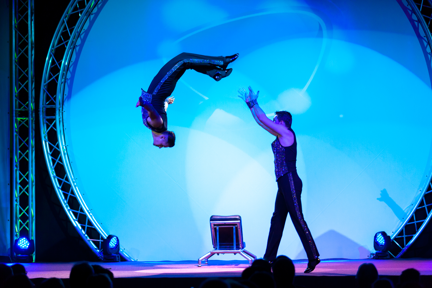 Bildunterzeile: Die zwei spanischen Akrobaten Richard & Sandro heben die Schwerkraft in Perfektion auf.