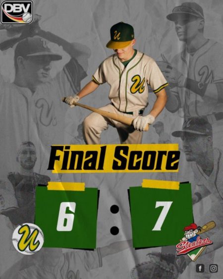 Im 2. Inning konnten die Gäste aus Hamburg scoren und gingen mit 3 zu 0 in Führung. Die U´s verkürzten durch einen Sacfly von Ian Eberhardt und Maurice Bendrien kam durch einen wild pitch zum 2 zu 3 über die Homeplate. Die Stealers legten bis ins 7. Inning 4 Runs nach und bauten die Führung auf 7 zu 2 aus. Angefeuert von den 90 Zuschauern im Ahorn-Ballpark, war es wieder Ian Eberhardt, der durch einen RBI Single den dritten Run für die Untouchables reinschlug. Im 8. Inning noch einmal spannend. Phildrick Llewellyn, Beyers und wieder Bendrien verkürzten bis auf einen Zähler. Die Aufholjagd blieb ohne Erfolg und die U´s mussten sich mit 6 zu 7 geschlagen geben. Nachdem gestern schon zwei Nachwuchsspieler ihr Debüt gaben, feierte im 2. Spiel Ladislaus Landwehr sein Bundesliga Debüt. Die erfolgreichsten Schlagleute waren Daniel Hinz (3H ist) und Chris Beyers (2 Hits).