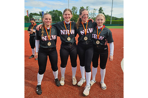 Foto: v.li: Maleen Bodem, Meret Willeke, Janina Butt und Lilly Lubnau gewinnen mit Team NRW den U19 Softball Länderpokal in Paderborn. Wir gratulieren Ihnen ganz herzlich!!