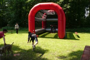 Beim Power Pitcher kann die Wurfgenauigkeit und die Höchstgeschwindigkeit getestet werden. Maße: L 6,70 m / B 4,50 m / H 4,30 m