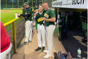 Im ersten Saisonspiel der Saison 2024 traf die Landesliga Mannschaft von Coach Daniel Rahn auf den Gegner der letzten Partie der Saison 2023, die dritte Mannschaft der Dortmund Wanderers. Trotz der fast sechsmonatigen Winterpause fiel das Ergebnis mit einem 13-3 Sieg dabei ähnlich aus wie beim 12-2 Erfolg im Oktober des Vorjahres. Bei bestem Frühlingswetter konnte Rahn dabei zum Saisonauftakt auf sage und schreibe 23 Spieler zurückgreifen und hatte die Qual der Wahl für seine Starting Lineup. Diese ersten Neun legten dann im ersten Inning auch los wie die Feuerwehr und konterten einen 0-1 Rückstand aus der oberen Hälfte des Spielabschnittes mit insgesamt 5 Runs zur 5-1 Führung. Dabei gab es eine Schrecksekunde für den Dortmunder Pitcher Marko Dietsch zu überstehen. Einen krachenden Hit von Jonas Prior bekam er direkt auf das Handgelenk der linken Hand. Nach einer Behandlungspause konnte er aber weitermachen und brachte das Spiel trotz dieses Handicaps für die Wanderers über die restlichen 6 Innings. Gute Besserung an dieser Stelle.