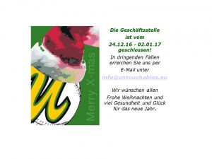Ab dem 02.01.2017 sind wir zu den gewohnten Öffnungszeiten wieder für Sie da.