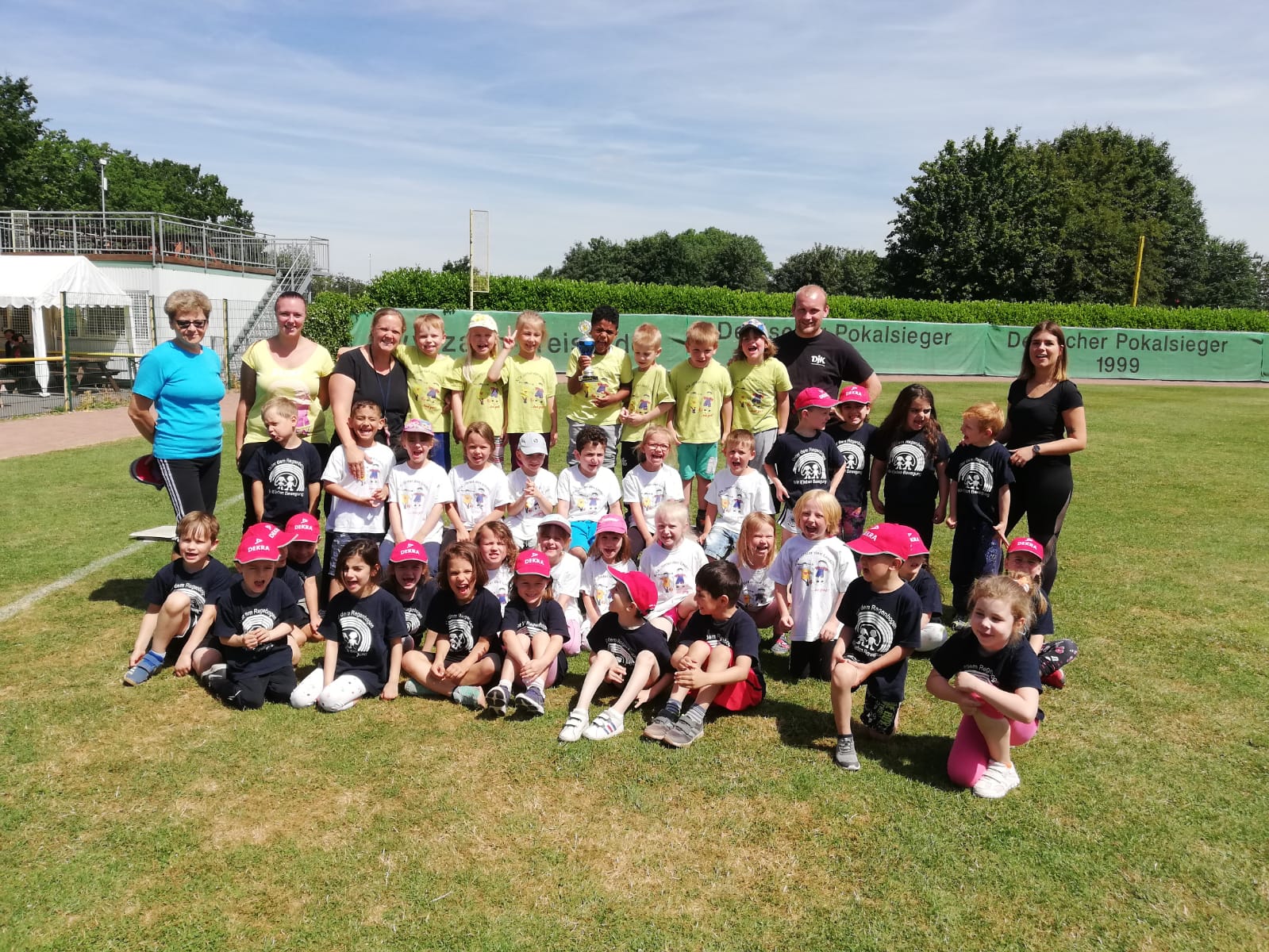 Bei bestem Wetter und super Stimmung trafen die Kinder von dem Kindergarten unter den Linden und Dem Kindergarten unter dem Regenbogen beim Ahorn Ballpark ein. Insgesamt hatten die zwei Kindergärten jeweils drei Mannschaften gestellt sodass sechs Mannschaften um den Titel der Untouchables Kindergartenmeisterschaft kämpften.