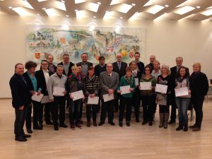 Sportvereine werden im Rahmen ihrer Kinder- und Jugendarbeit unterstützt, um sich als verlässlicher Bildungs- und Erziehungspartner kommunal etablieren zu können.  Eingegangen sind in diesem Jahr 24 Anträge von Vereinen  aus dem Kreisgebiet, die von den Verantwortlichen des KSB als förderungsfähig angesehen worden sind. Allerdings konnten aus den Landesmitteln nur 21 Vereine eine Zusage ausgesprochen werden. Kreisdirektor Dr. Conradi (3.v.r) und KSB-Präsident  Diethelm Krause (1.v.l.) überreichten die Förderpreise für vorbildliches Engagement.