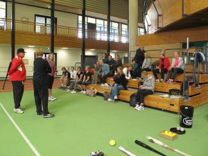 Nach einem kurzen historischen Abriß und einer Erläuterung des baseballspezifischen Equipments gab es eine kleine Schlageinheit bzw. Wurf- und Fangeinheit für alle, gefolgt von einem kleinem Abschlussspiel!