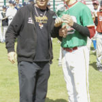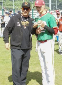 Eine Kuriosität ereignete sich bei der Siegerehrung, bei der auch die individuellen Auszeichnungen vergeben werden. Paderborns Bjarne Reinhardt (Foto li. mit Georg Bull) wurde als bester Werfer ausgezeichnet.