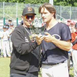 Der beste Spieler (MVP) wurde seitens der Turnierleitung überraschend an einen Spieler aus Baden-Württemberg vergeben. Moritz van Bergen (Foto unten mit Georg Bull) nahm die Trophäe entgegen und überreichte sie vor der den Augen der Turnierleitung dem Paderborner Reinhardt.