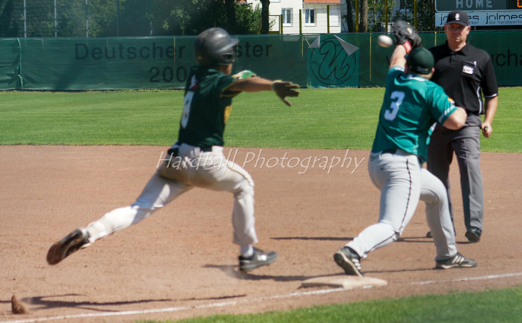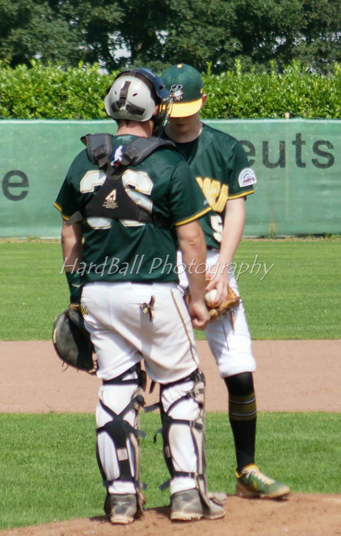 In Partie eins fand Mark Harrison von Beginn an nicht ins Spiel. Hinzu kamen einige Baserunningfehler und harte Paderborner Line Drives, die in Handschuhen landeten. Bei der knappen Führung der U's bis ins 5. Inning sollten sie sich als kostspielig für den Gastgeber erweisen. Endstand 3-6 gegen die Domstädter.
