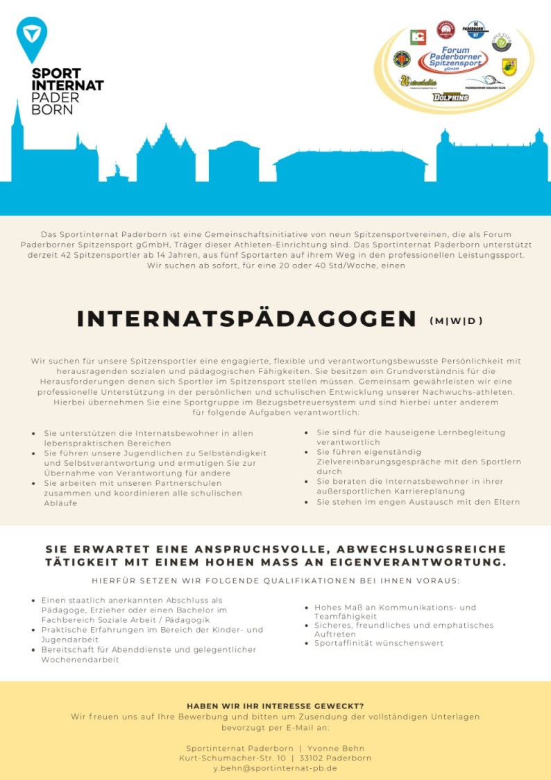 Paderborner Spitzensport gGmbH, Träger dieser Athleten-Einrichtung sind. Das Sportinternat Paderborn unterstützt