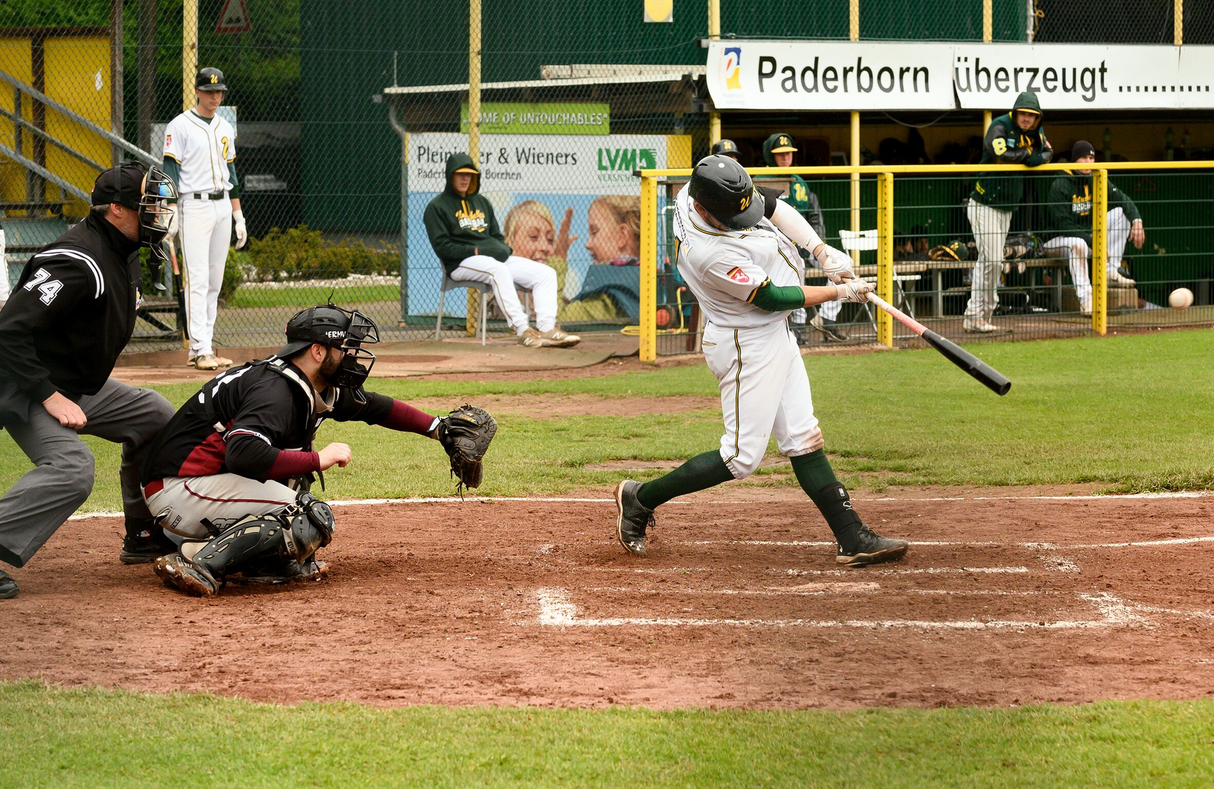 Im 2. Spiel dauerte es bis ins 3. Inning bis die Capitals mit 3 zu 0 In Führung gehen konnten. Den U´s gelang es erst im 5. Inning gegen Bonns Dodson einen Run zu scoren. Im 6. Inning war es dann Marco Cardoso, der bei Bases Loaded ein 3 RBI Double schlug und die U´s mit 4 zu 3 in Führung brachte. 3 weiter Runs im 8. Inning sicherten den U´s nicht nur den Sieg in Spiel 2, sondern auch die Tabellenführung der Bundesliga Nord. Da die Alligators gegen Dohren das 2. Spiel verloren haben, reisen die U´s am Sonntag zu den Alligators, die mit einer Niederlage mehr auf dem 2. Platz liegen. Spielbeginn am Sonntag in Solingen ist um 13 Uhr.