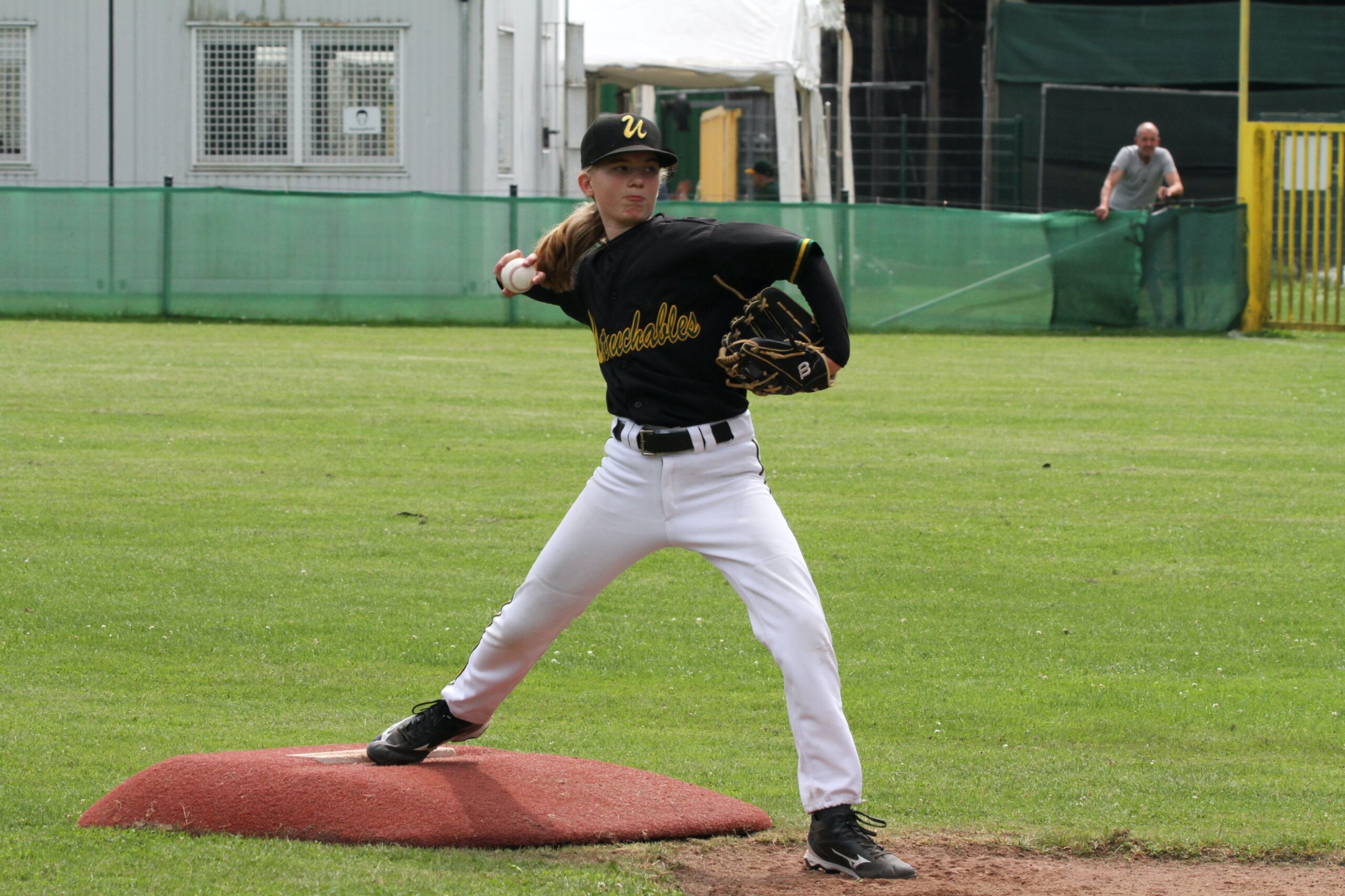 Das erste Spiel startete Aaron Damaschke für die die U`s auf dem Mound. Bis auf einen 2 Run Homerun und 3 Hits, ließ Aaron gegen die Capitals offensive nichts zu. Unterstützung gab es von der Untouchables offensive reichlich. 3 Homeruns und 10 weiter Hits verbuchten die U´s beim 18 zu 2 Sieg nach  4 Innings gegen die Bonn Capitals.