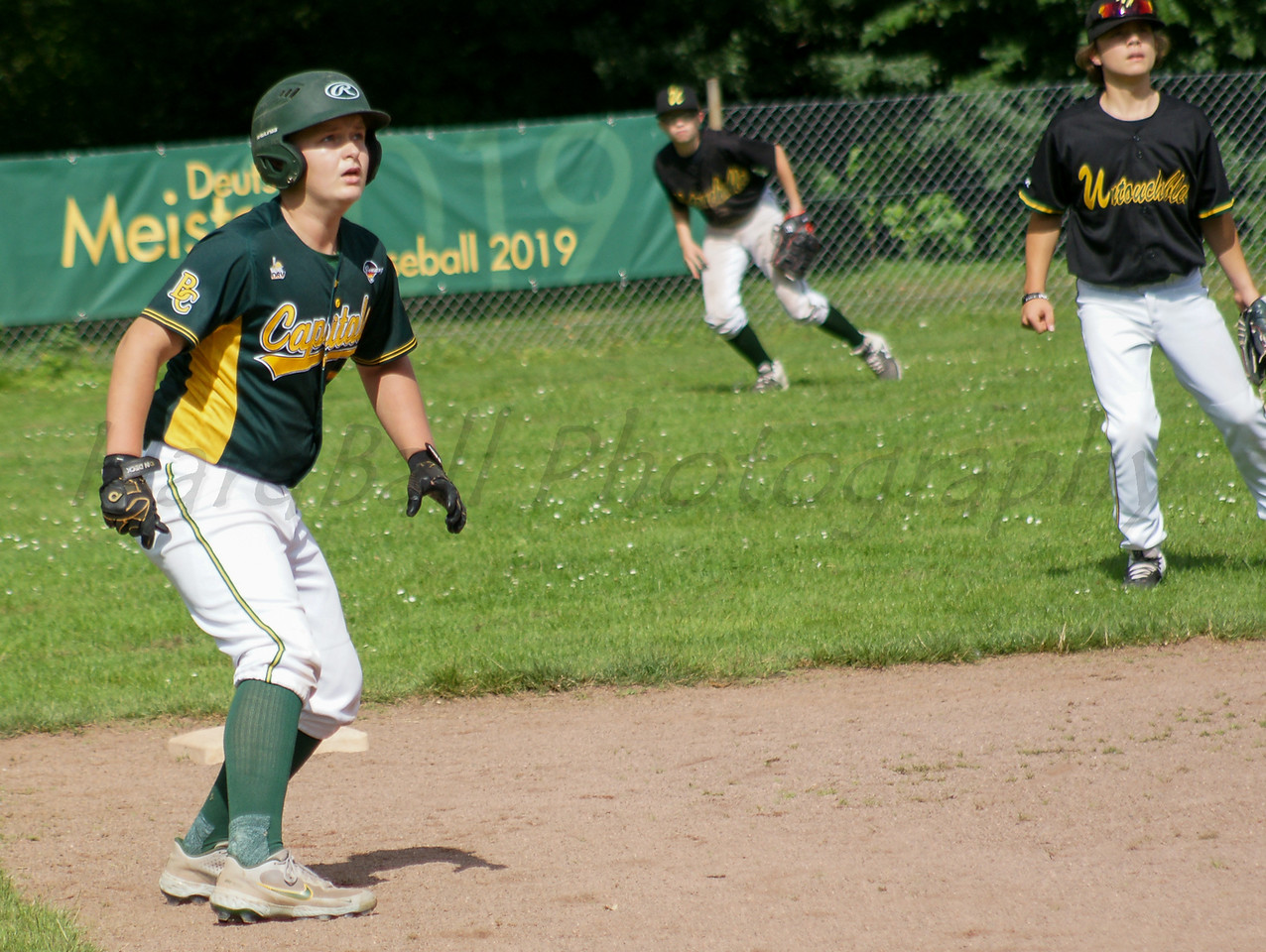Das zweite Spiel gestaltete sich zu Beginn etwas spannender. Die U´s hatten gegen den Pitcher der Capitals ihre Probleme und gingen mit 0 zu 2 in Rückstand. Im dritten Inning wachte dann die offensive der Us auf und glich zum 2 zu 2 aus. Ein weiterer Run im vierten Inning und sieben Runs im fünften Inning sicherten dann den verdienten Sieg. Erfreulich war der erste U15 Homerun von Jan- Luca Vogt. In zwei Wochen spielen die U’s zum Abschluss der Saison in Köln. Bei dem Spiel in Köln wird die Mannschaft auf 6 Spieler verzichten, die gleichzeitig bei der U18 DM in Bonn spielen. Am 2. und 3. Oktober findet dann das Highlight die U15 DM im Ahorn-Ballpark statt.