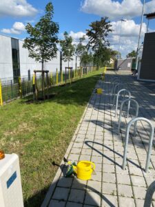 16 Spitz-Ahorn Bäume stehen nun entlang des neuen Geh-/Fahrradweges zwischen Ahornallee und Heinz Nixdorf-Ring.