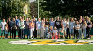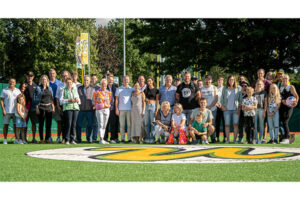 Die Baumpaten mit Ihren Familien auf dem neuen Kinder- und Breitensportfeld der Untouchables.