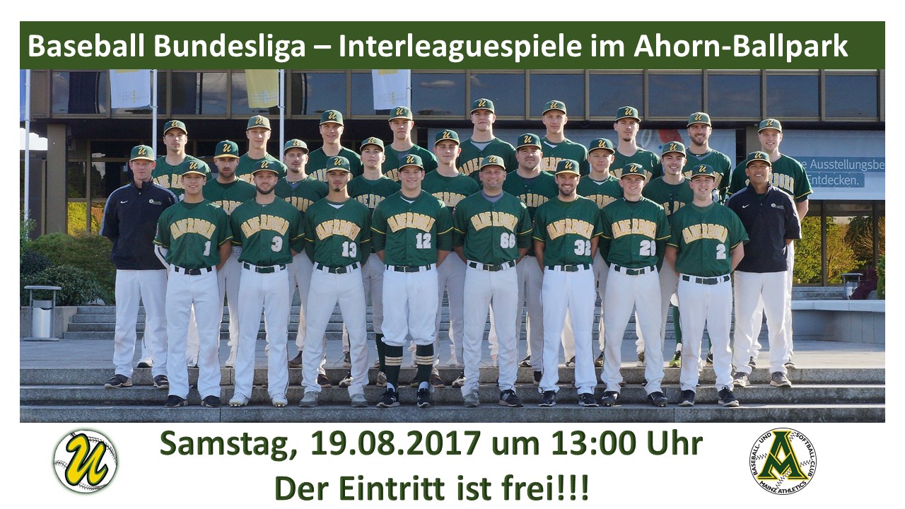 Diesen Samstag findet der 3. Spieltag der Interleaguerunde gegen die Mainz Athletics im Ahorn- Ballpark statt. Für unsere Jungs geht es darum wichtige Punkte zu sammeln, um in der Tabelle nach oben zu klettern.