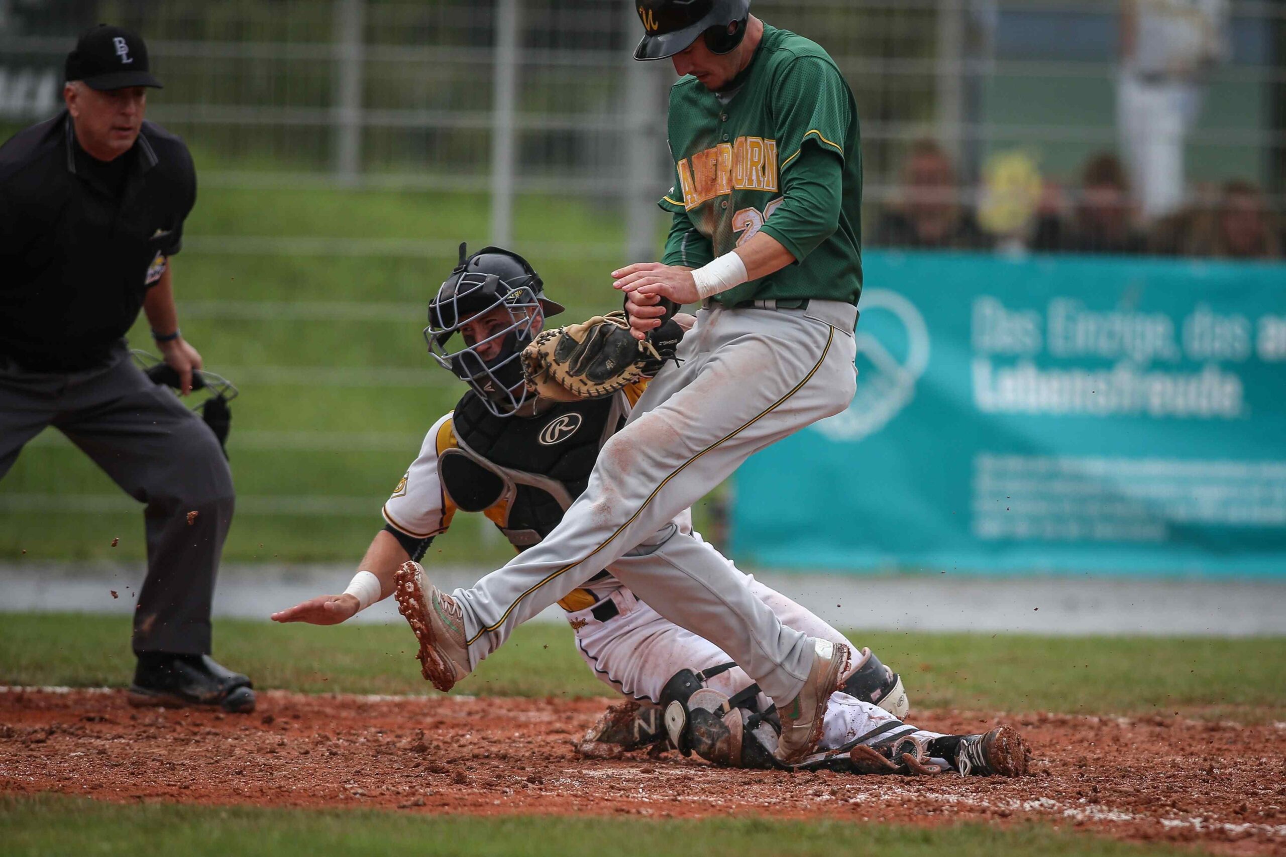 Extra Innings: Für Bollinger stand nun Lukas Steinlein auf dem Hügel und warf direkt den ersten Batter ab. Die Rallye konnte starten. Till Schade konnte den abgeworfenen Maurice Bendrien per Bunt auf die 2.Base bringen. Fünf Pitches später, die umjubelte 1:0 Führung durch RBI-Double von Daniel Thieben. Nun ging es in die Defensive. Matt Kemp kam ein wenig in Bedrängnis auf dem Mound, holte sich dennoch seinen Double-Play Groundball direkt zu ihm zurück, warf zu Bendrien für das wichtige Out an der Homeplate, dieser warf ans 1. Base, knappes Play, safe call. Letztendlich kamen die beiden Punkte der Münchener durch einen halbhohen Flyball über Second Base, bei dem der Schlagmann seinen Schläger zersplitterte und durch einen Wild Pitch des 17-jährigen Nick Göbert rein. „Vorher gab es zwei klare Fehlentscheidungen gegen uns. Im zweiten Spiel waren wir deutlich besser“ so Speer.
