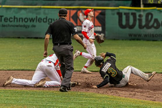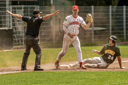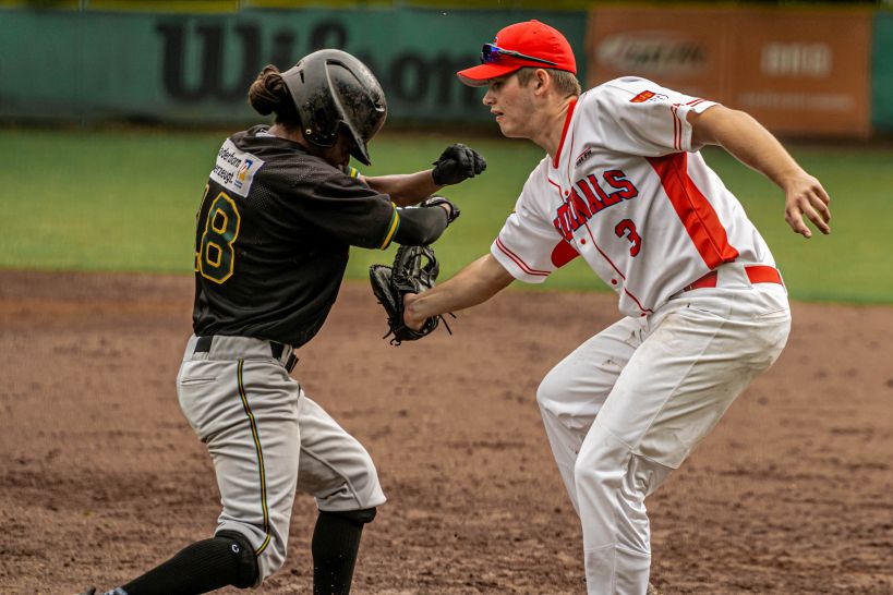 Die Untouchables hatten an diesem Tag insgesamt 14 Base-Runner, konnten aber bei der 1:3-Niederlage gegen die Cardinals am Samstag nur einen Run erzielen. Daran war vor allem die Defensive der Cardinals schuld, die in vielen Drucksituationen hervorragende Spielzüge zeigte. Mark Harrison und Benjamin Thaqi ließen zusammen 3 Runs bei 5 Hits und 4 BB zu, während sie 10 Cardinals Hitter per Strikeout zurück ins Dugout schickten.