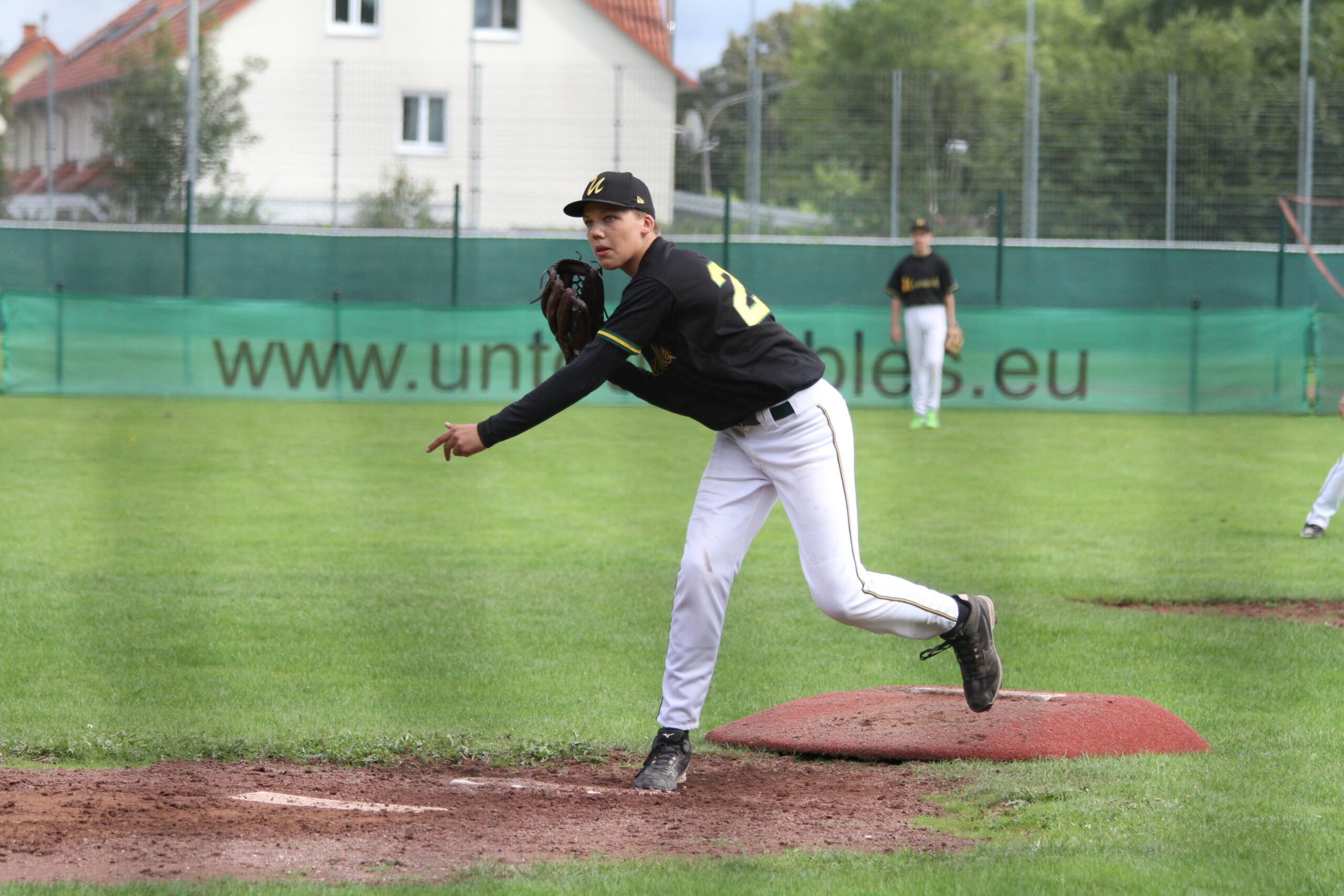 Trotz zweier Niederlagen gegen die Cologne Cardinals fuhren die Untouchables am Samstag mit einem positiven Gefühl nach Hause. Der Start ins Spiel eins war geprägt durch eine Autopanne und die damit verbundene kurze Vorbereitung. Einige Unkonzentriertheit auf den Bases und im Feld erschwerten das erste Spiel auf dem großen Platz. Im Vorfeld einigten sich die beiden Trainer darauf, dass mit Hinsicht auf die Deutsche Meisterschaft auf dem großen Feld gespielt wird. Die Untouchables mussten verletzungsbedingt gleich zu Beginn Meret Willeke vom Mound nehmen und Finn Pott übernahm und warf ein gutes Spiel. Mit 10 zu 4 musste man sich im ersten Spiel geschlagen geben. Im zweiten Spiel waren die U’s dann von Anfang an wach und konzentriert und boten einem kompletten Cardinals Team Paroli. Den Cardinals gelangen im vierten Inning die Sieg bringenden zwei Runs zum 11 zu 9. Trotz der beiden Niederlagen und gerade weil 6 Stammkräfte aufgrund der U18 DM in Bonn fehlten, zog Coach Björn Schonlau ein positives Fazit und war erfreut über die Leistung von jedem einzelnen.