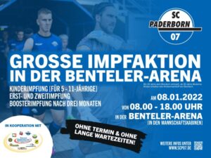 Teilnehmer der Impfaktion haben die Möglichkeit, auf den Parkplätzen vor der Westtribüne und der Nordtribüne zu parken. Der Zutritt in die Benteler-Arena erfolgt ausschließlich über Eingang 4 im südlichen Bereich der Westtribüne. Über den Spielertunnel und die Mixed-Zone erfolgt der Zutritt in die Heim- oder Gastkabine zum Erhalt der Impfungen.